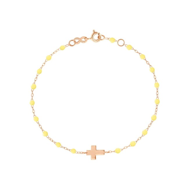 Bracelet Gigi Clozeau Croix en or rose et résine mimosa, 17cm